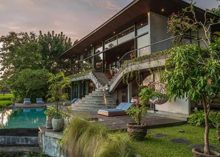 Com piscina para relaxamento dos hóspedes, a The Flow House Vila familiar está localizada a 10 minutos de carro do Estúdio Yoga Barn. Com acesso a pátio, esta acomodação está localizada a 6 km do Palácio Real de Ubud.
